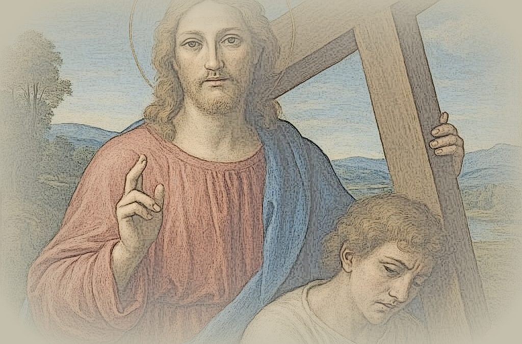 Jeden ze złoczyńców, których tam powieszono, urągał Mu: «Czyż Ty nie jesteś Mesjaszem? Wybaw więc siebie i nas».
