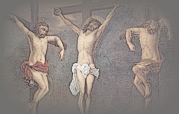 Jeden ze złoczyńców, których tam powieszono, urągał Mu: «Czyż Ty nie jesteś Mesjaszem? Wybaw więc siebie i nas».